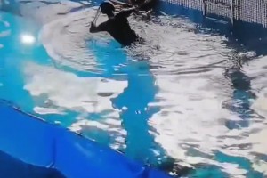 女子在一米深的泳池里溺水,幸好救生员及时发现下水营救