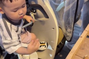 萌娃坐在电车上,伸手偷吃路边榴莲,小孩:是榴莲先动手诱惑我的