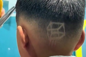 带孩子去理发,非要在头上理个正方体,网友:知足吧