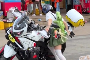 80斤的女子竟能把600斤大摩托扶起来,看起来轻轻松松丝毫不费力