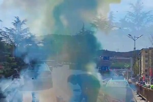 男子第一次燃放彩烟墙,导致自己的头被烟弹崩着!!